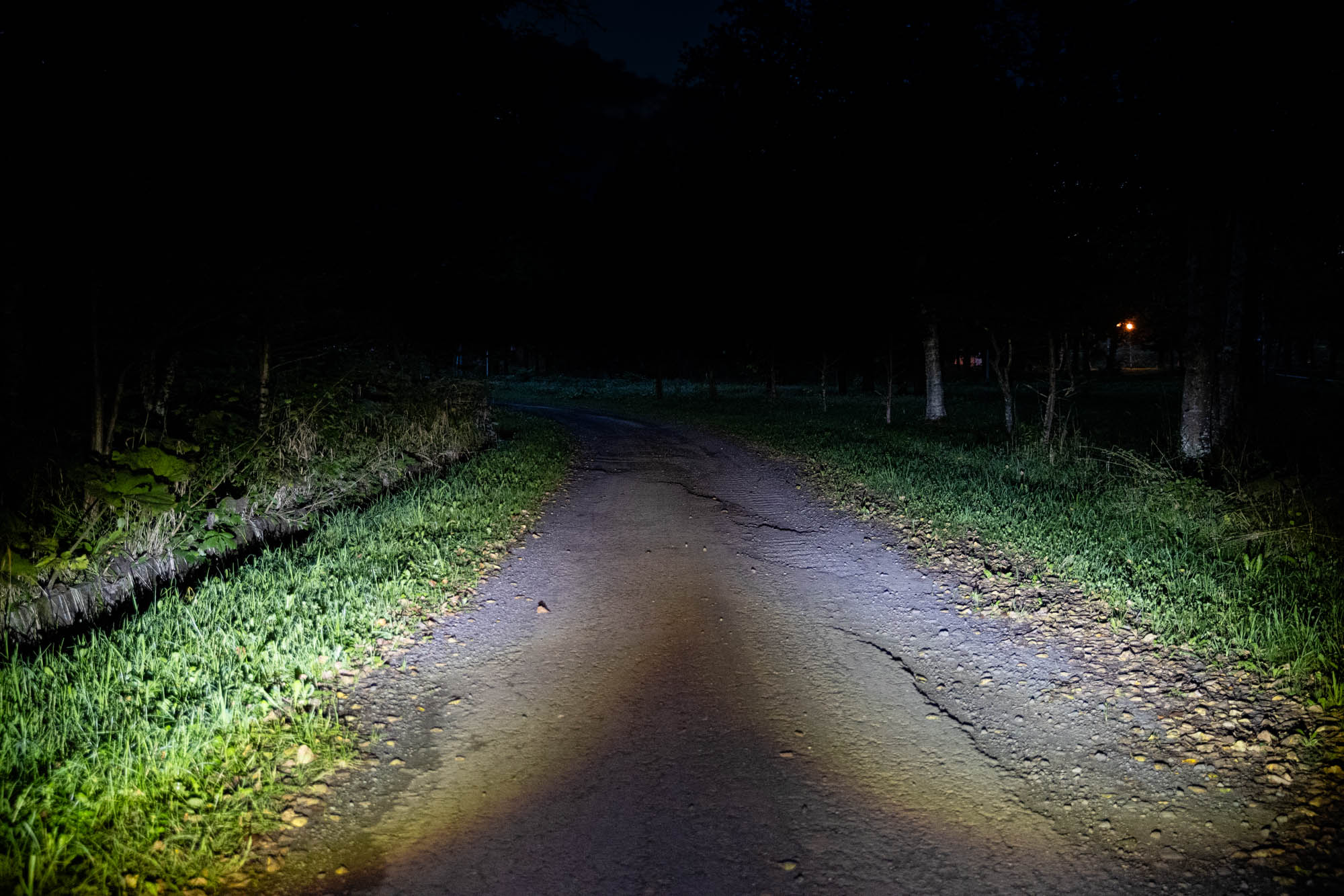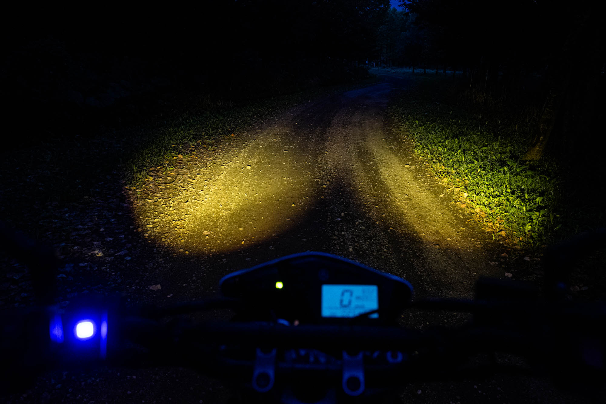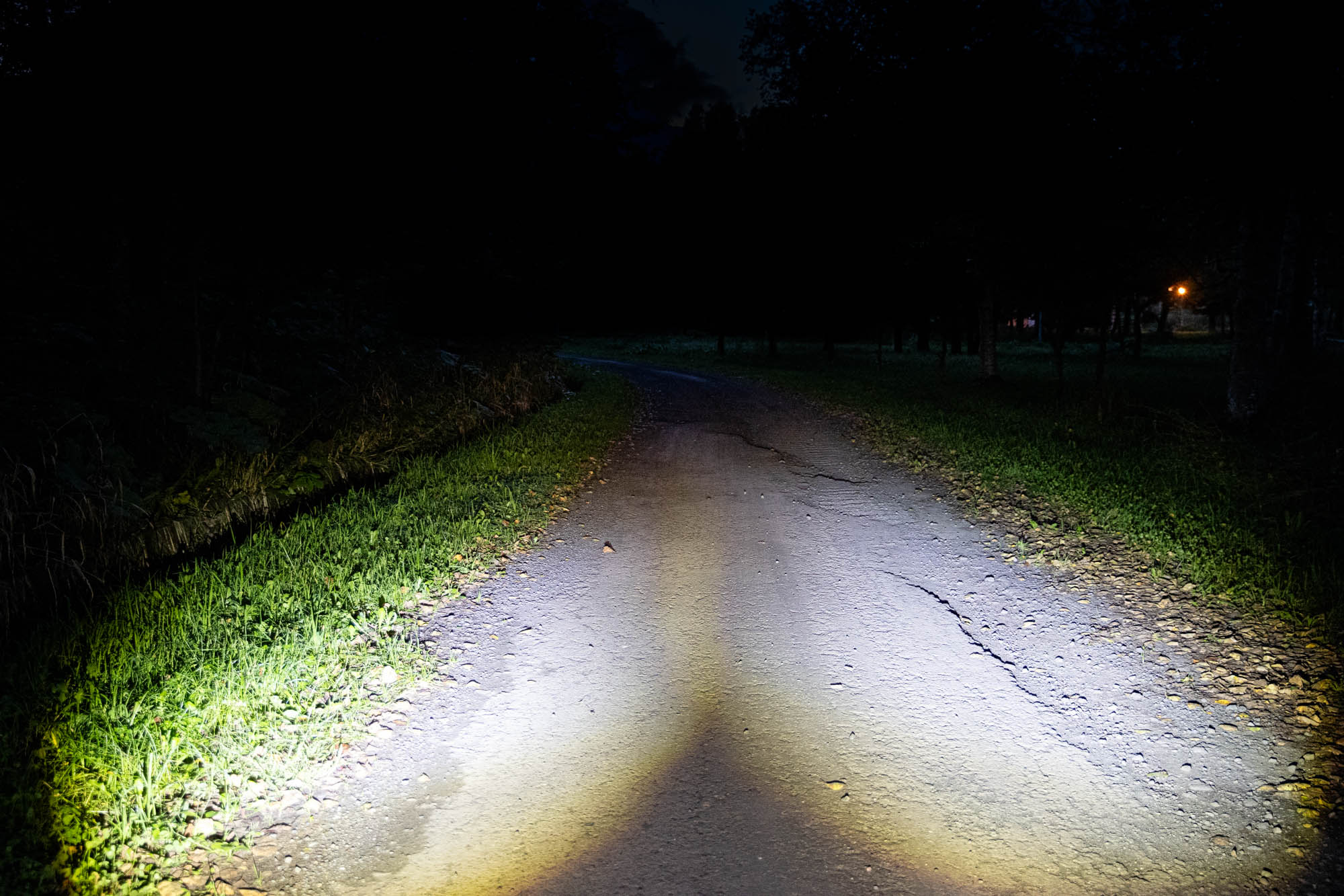 ただし、セロー純正のライトが暗いため、フォグが明るすぎて中央部が逆に暗く感じることもありました。これが気になる方は照射角を狭め、純正ライトを補うように中央をしっかり照らす設定にした方が走りやすく感じるでしょう。林道では「広く照らす」か「狭く集中する」かをシーンに応じて切り替えるのがコツです。