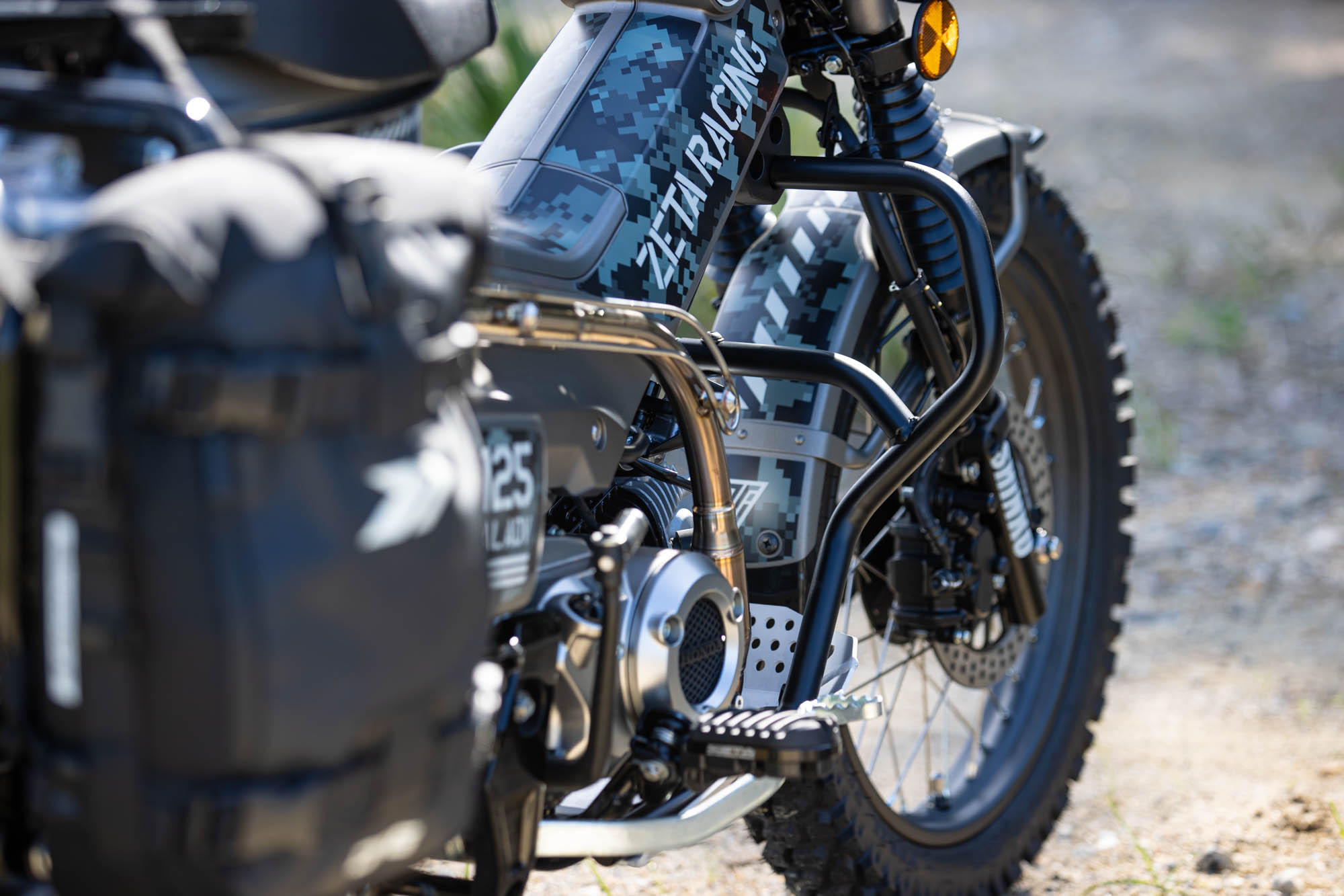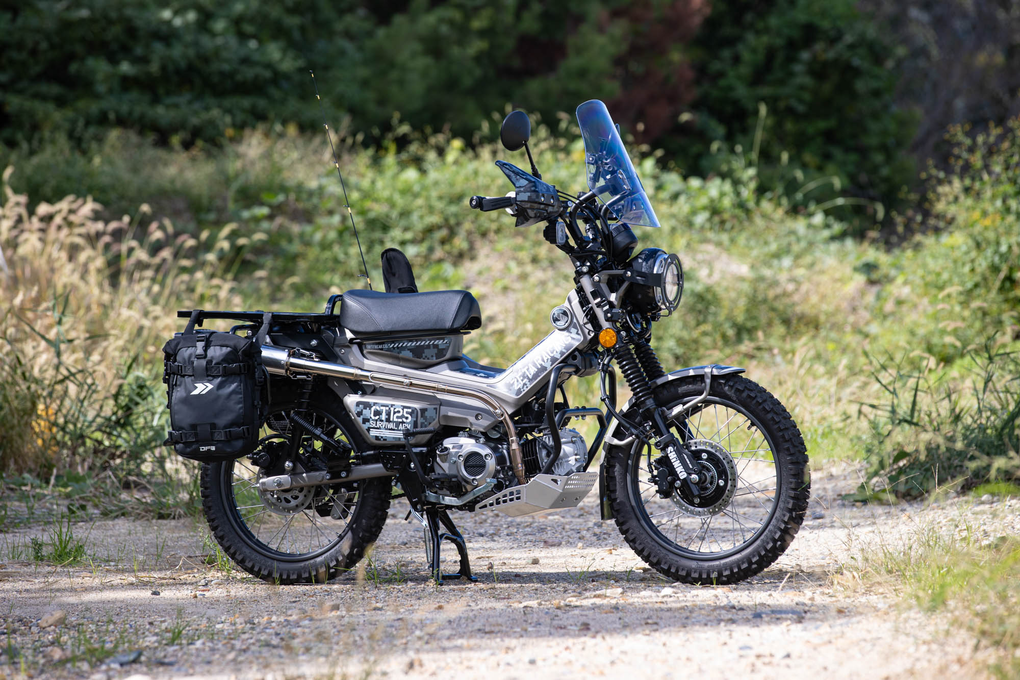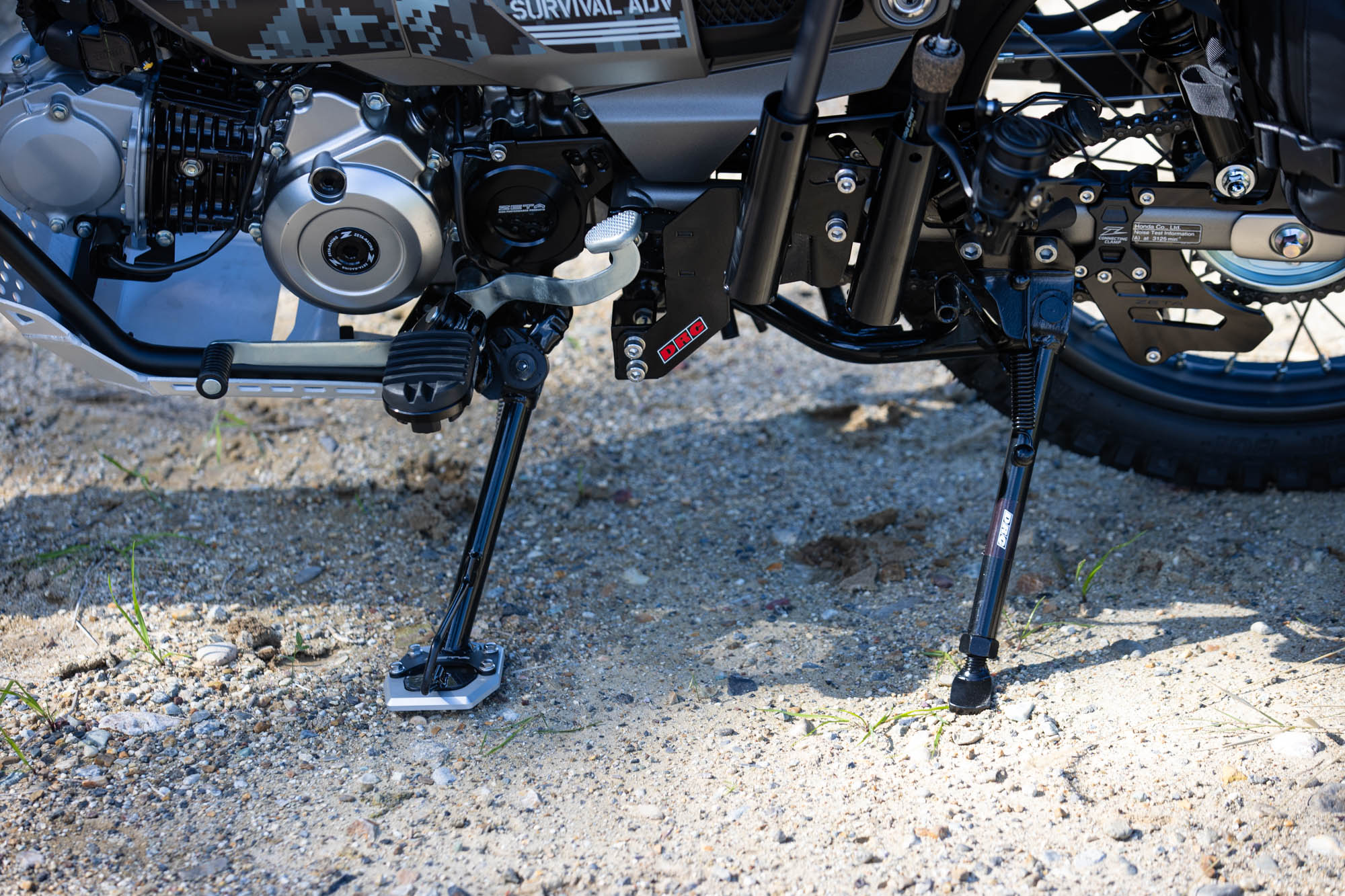 CT125 SURVIVAL ADV2は、見た目だけのカスタムではありません。ZETA RACING製の「スペシャライズド ハンドルバー」はCT125専用設計で、最適なポジションによりオンロードからオフロードまで操作性を向上させます。また、足元には「アドベンチャーフットペグ」を装備。幅広のステップがどんな路面状況でも靴底を確実に捉え、スタンディング時の安定感を生み出します。