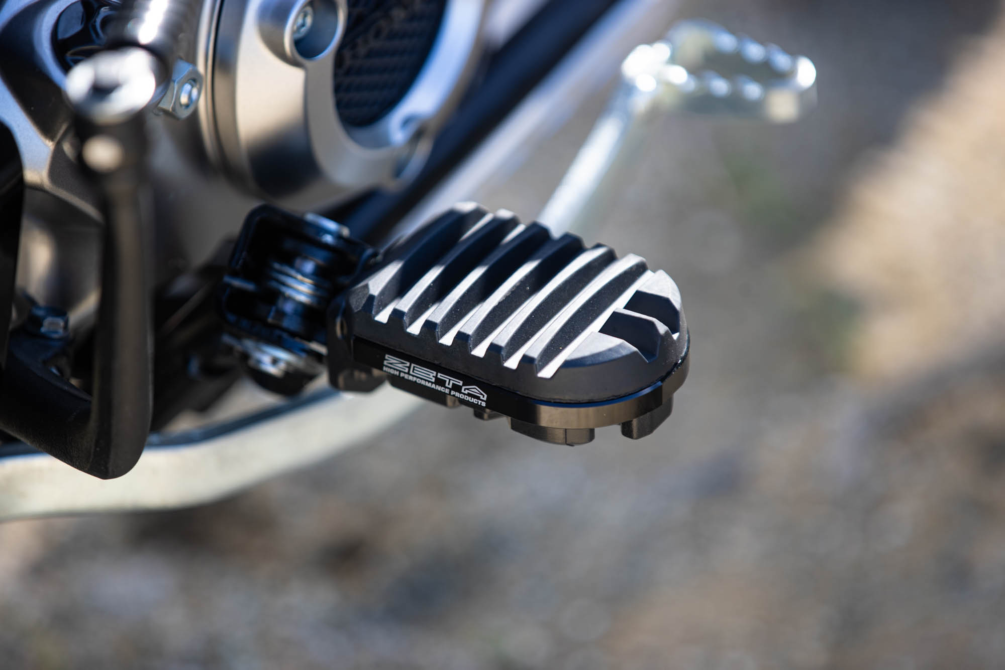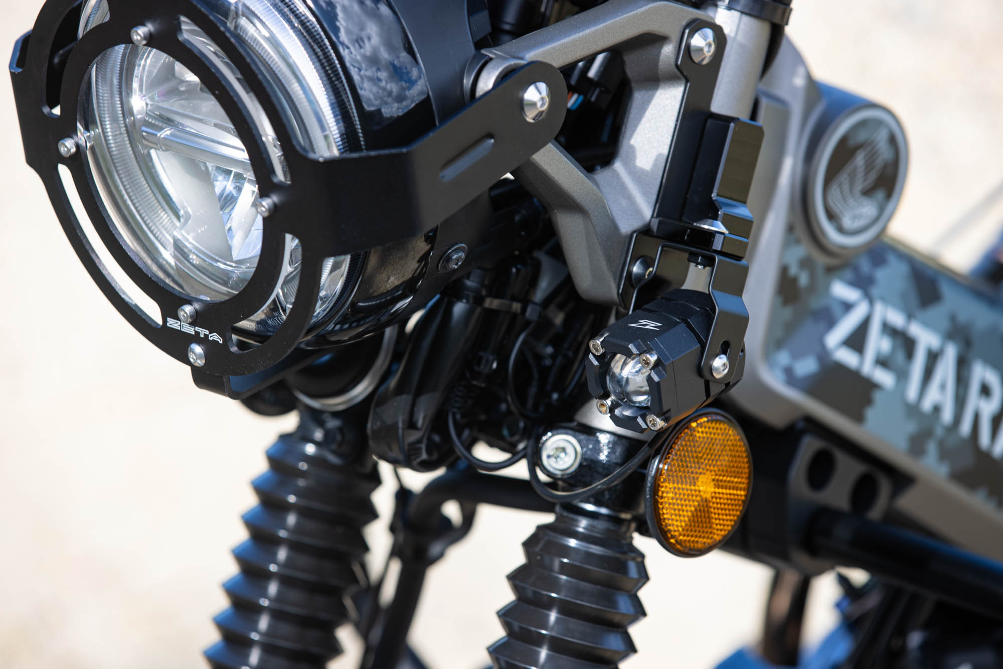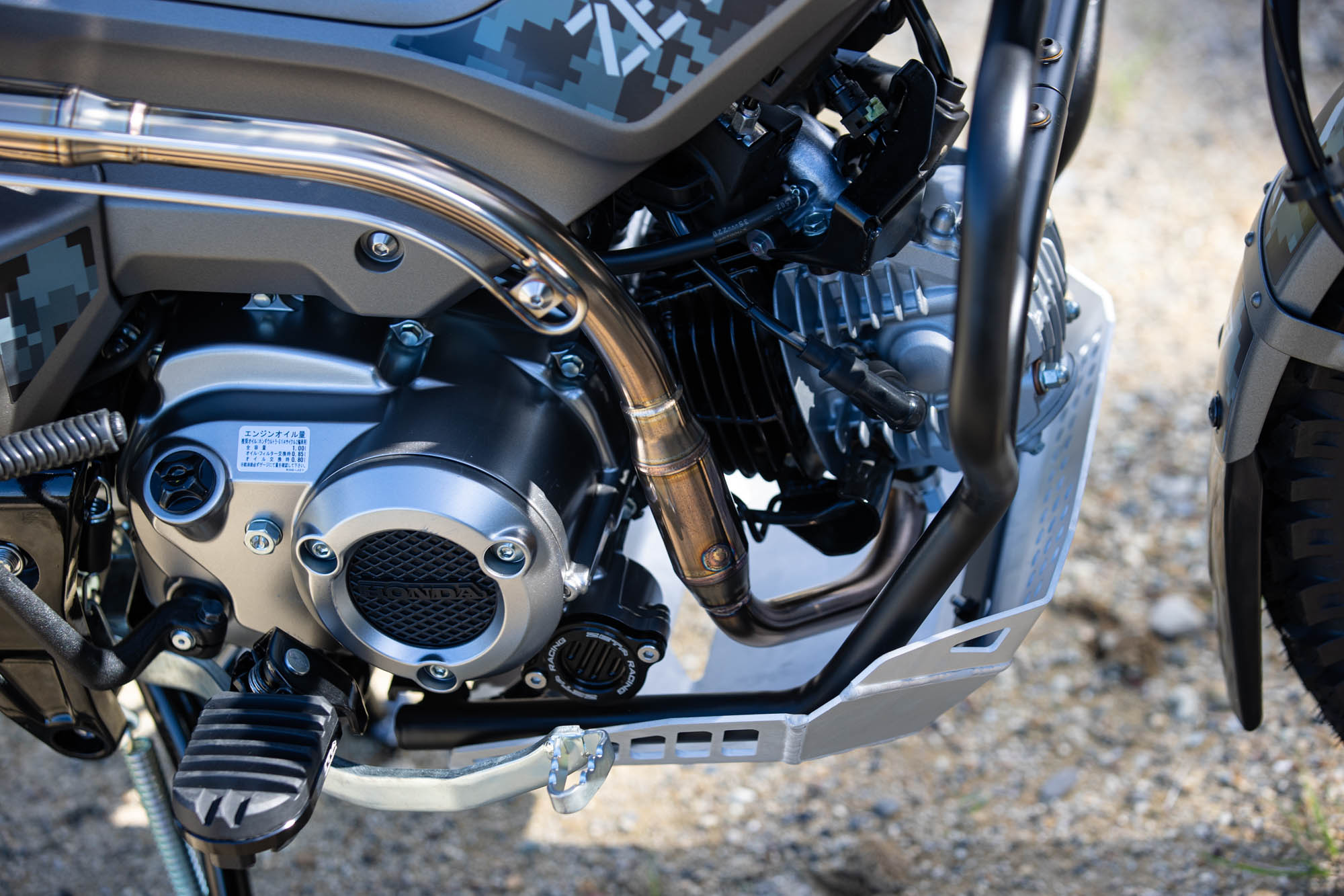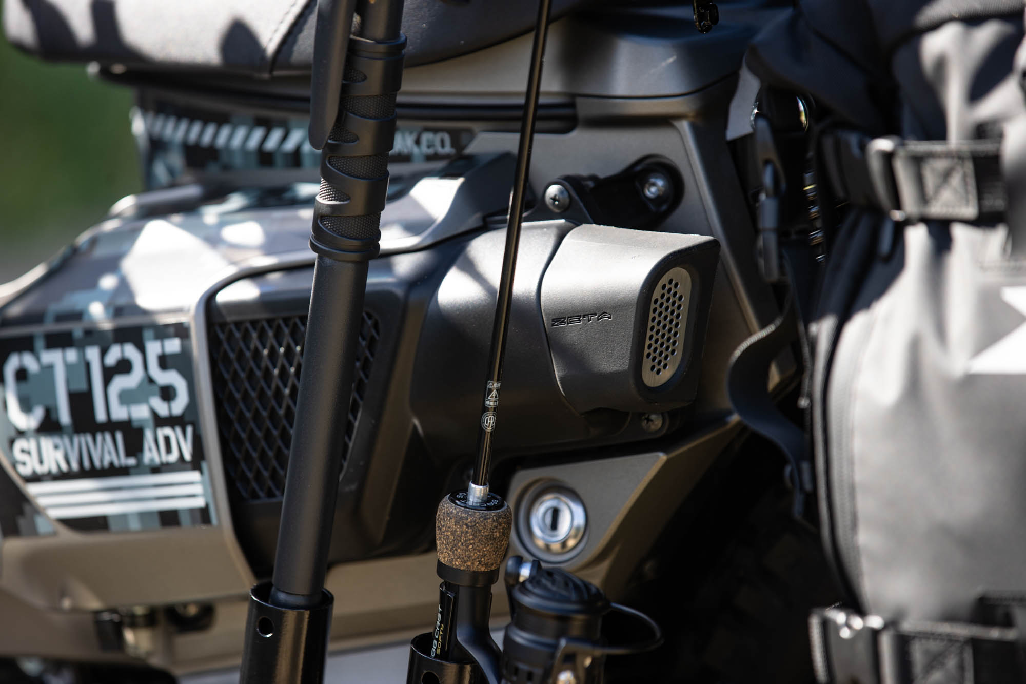 CT125 SURVIVAL ADV2は、見た目だけのカスタムではありません。ZETA RACING製の「スペシャライズド ハンドルバー」はCT125専用設計で、最適なポジションによりオンロードからオフロードまで操作性を向上させます。また、足元には「アドベンチャーフットペグ」を装備。幅広のステップがどんな路面状況でも靴底を確実に捉え、スタンディング時の安定感を生み出します。