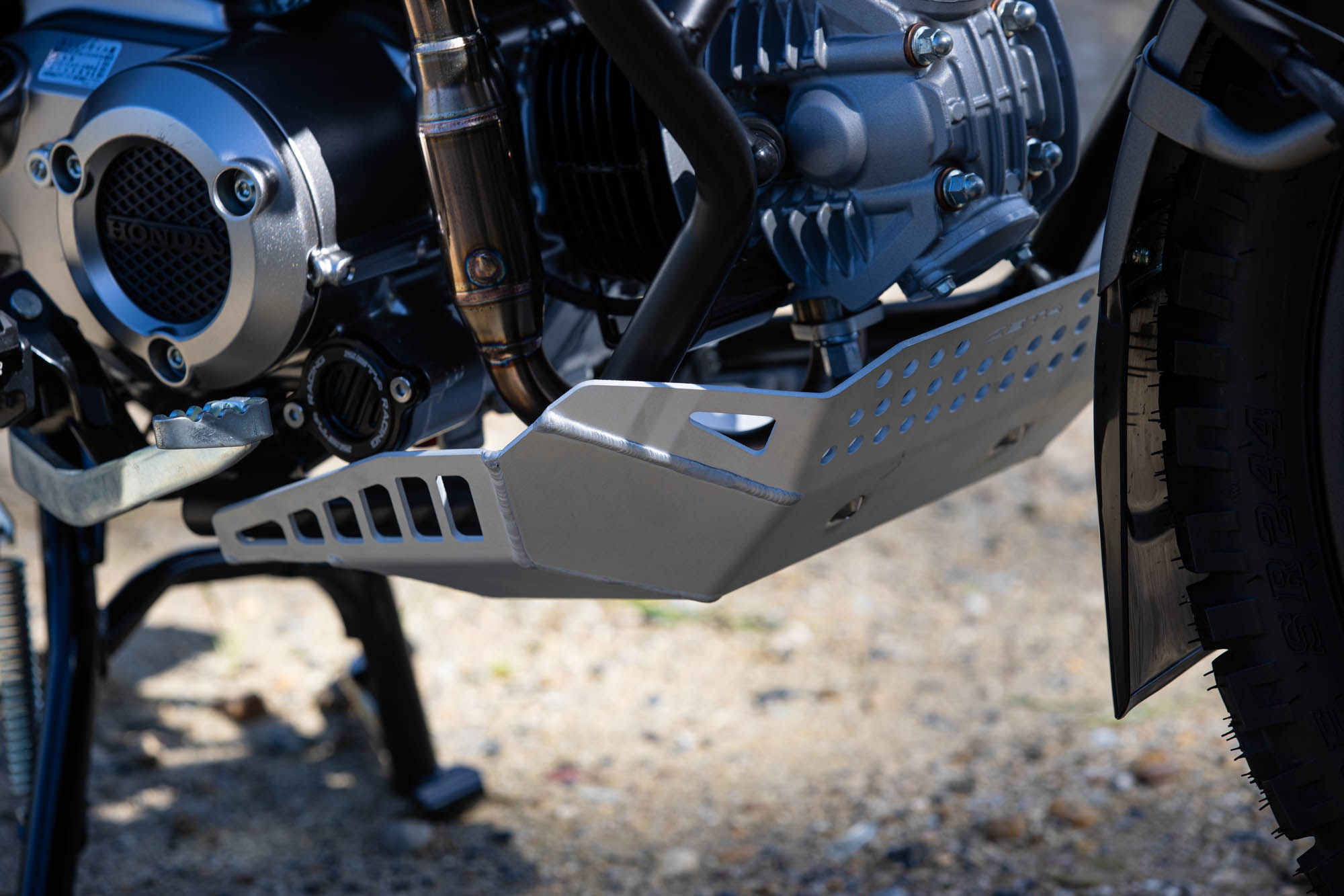 3.2mm厚のアルミ合金を採用。オフロード走行での飛び石などからエンジン下部を強固に守ります。