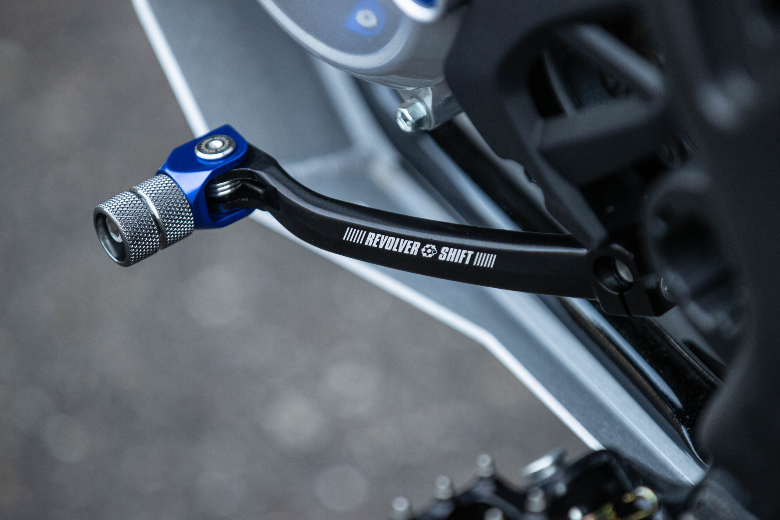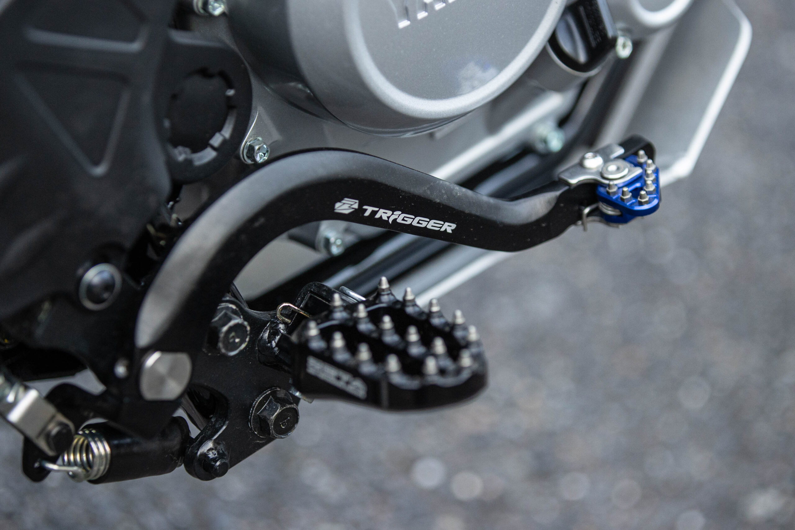 スチール製の純正に比べて鍛造A2014材のアームで大幅に曲がりづらく、ツーリング中のトラブルなどを回避。スタンダードポジションを含め、6段階のチップ位置調整が可能なリボルバーシステムもポイント。チップにはローレット加工をすることで滑りにくく、ステップとの位置関係もオフロードに特化しています。