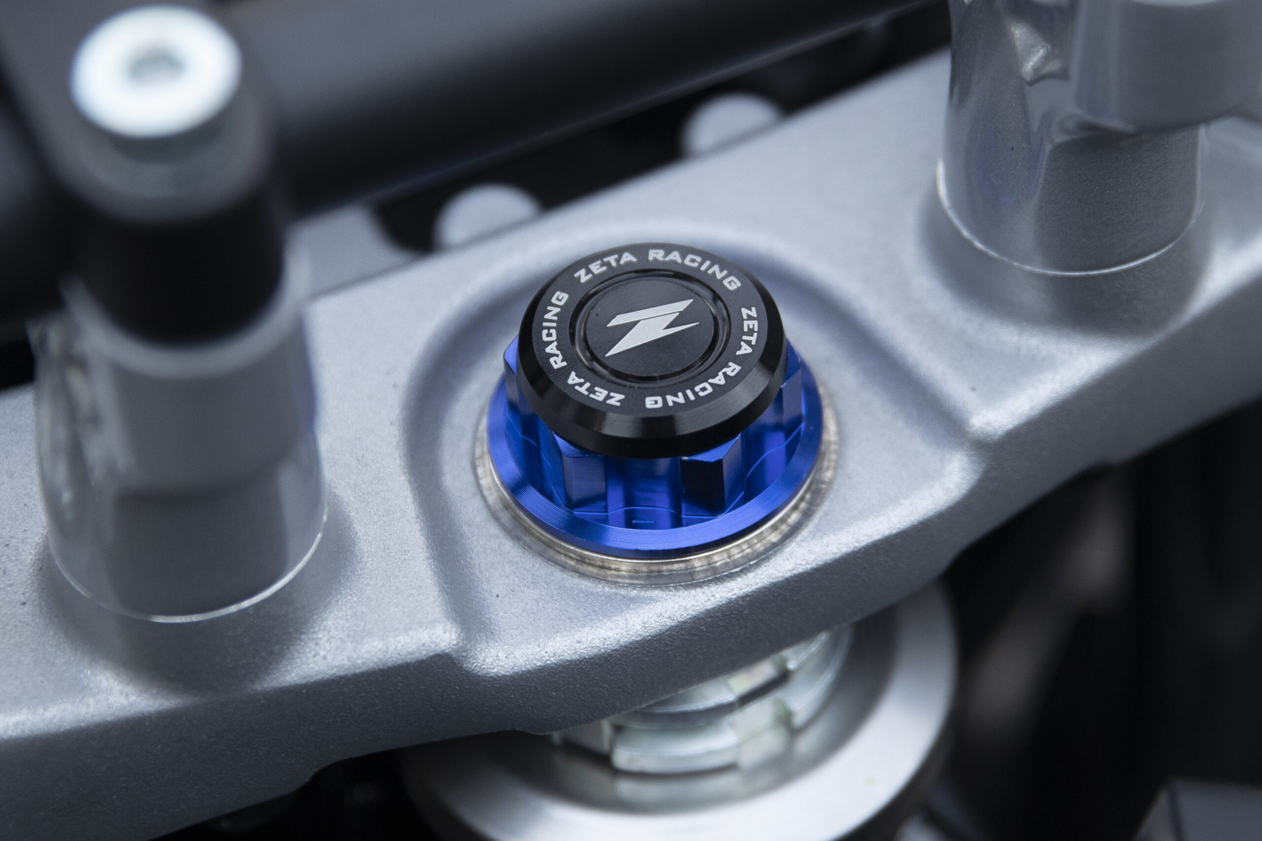高強度アルミ合金から削り出したステムナット。純正ナットと交換するだけで、コックピット周りをスポーティーに彩ります。