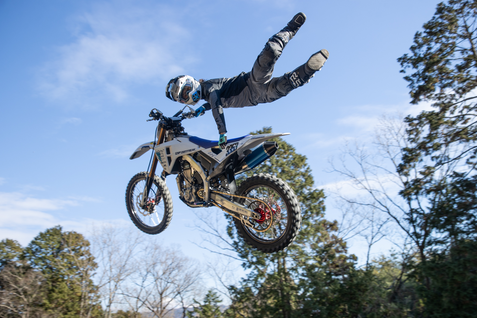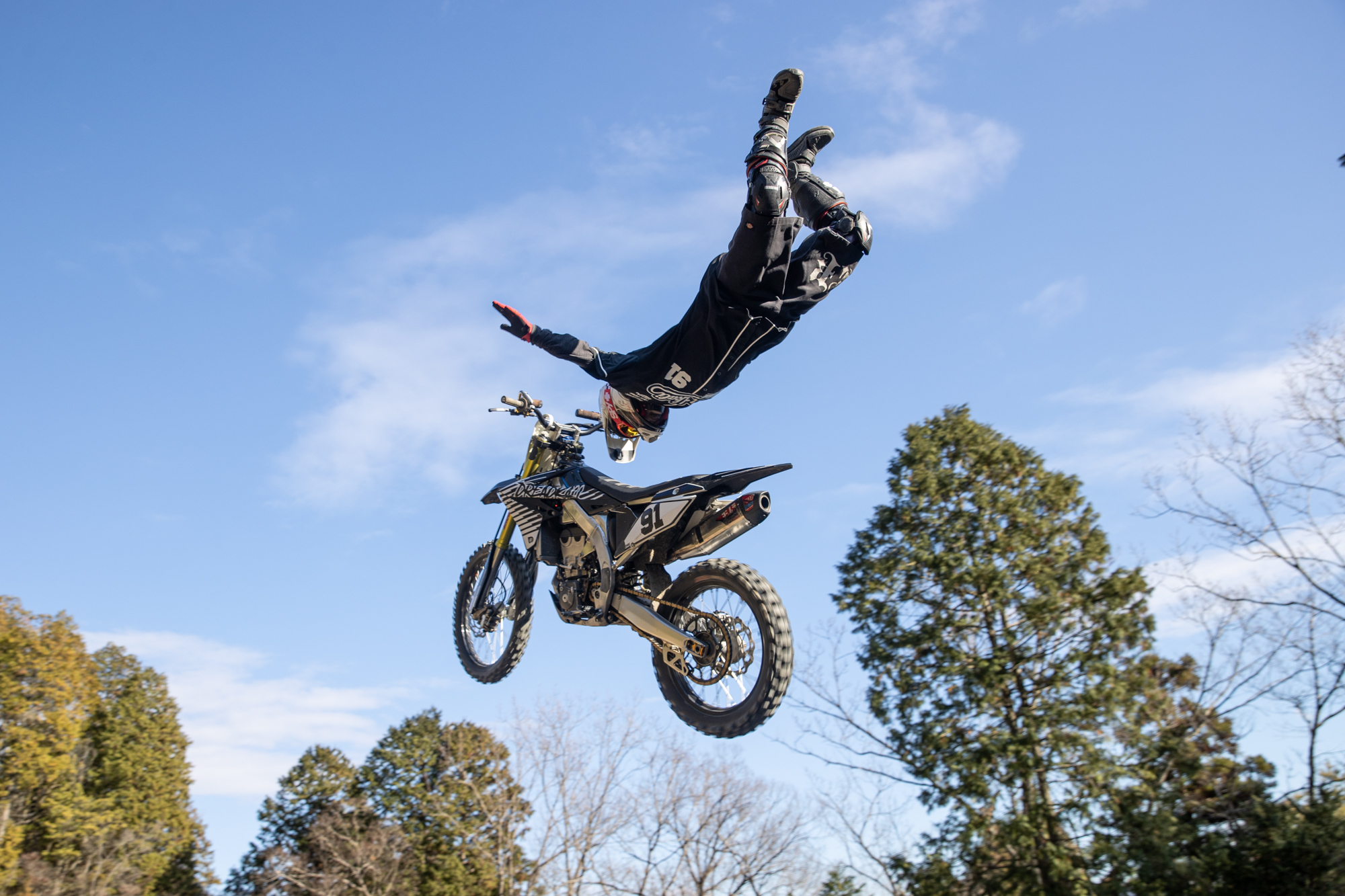 ここで紹介した4つのトリック以外にも様々な技があり、名称は細かく分かれています。片足をステップから離してシートの反対側に出すナックナックという技もあり、これはAMAスーパークロス250クラスで7回チャンピオンを獲得したレジェンド、ジェレミー・マクグラスが優勝した時にやった技で、レースシーンの動きがFMXの象徴的なトリックとして受け継がれています」