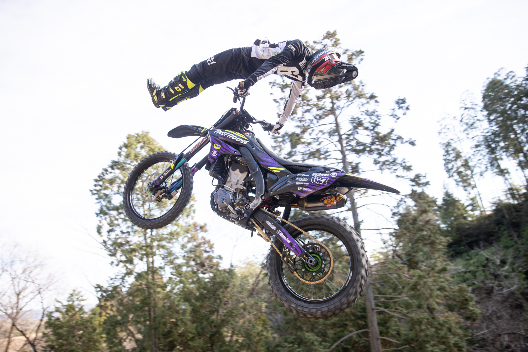 元全日本モトクロス選手権国際A級ライダー。怪我をきっかけにFMXへと転向し、現在は国内外でショーを行うプロFMXライダーとして活動しています。さらに、FMXのジャンプ台の作成から設営、安全管理、イベント全体の構成までを一貫して手がける「FMX SHOWCASE」を設立。ライダーと裏方、両方の視点を持ちながら、日本のFMXシーンを牽引する第一人者です