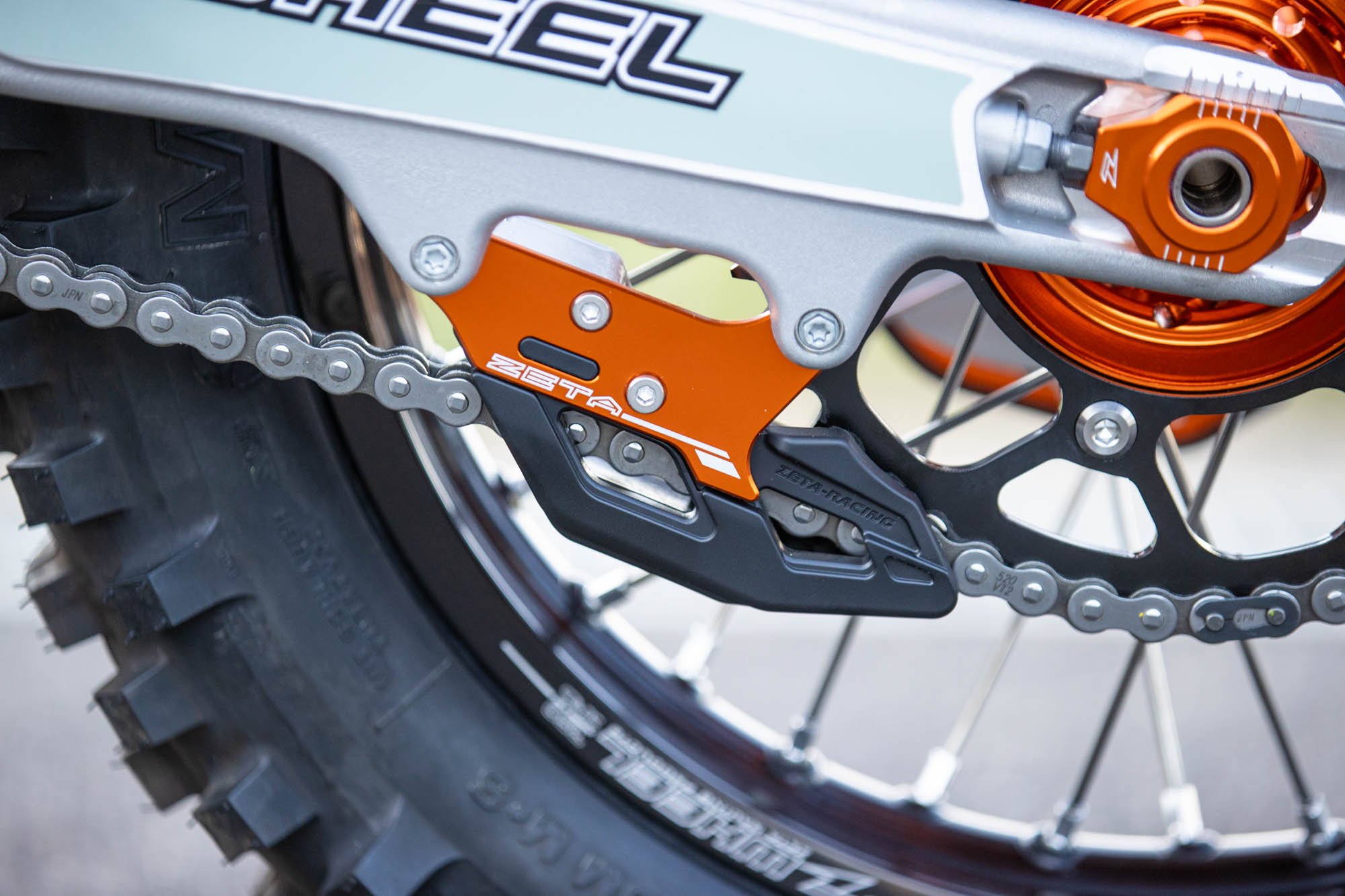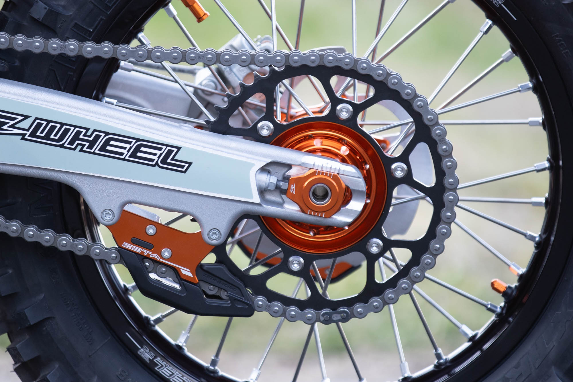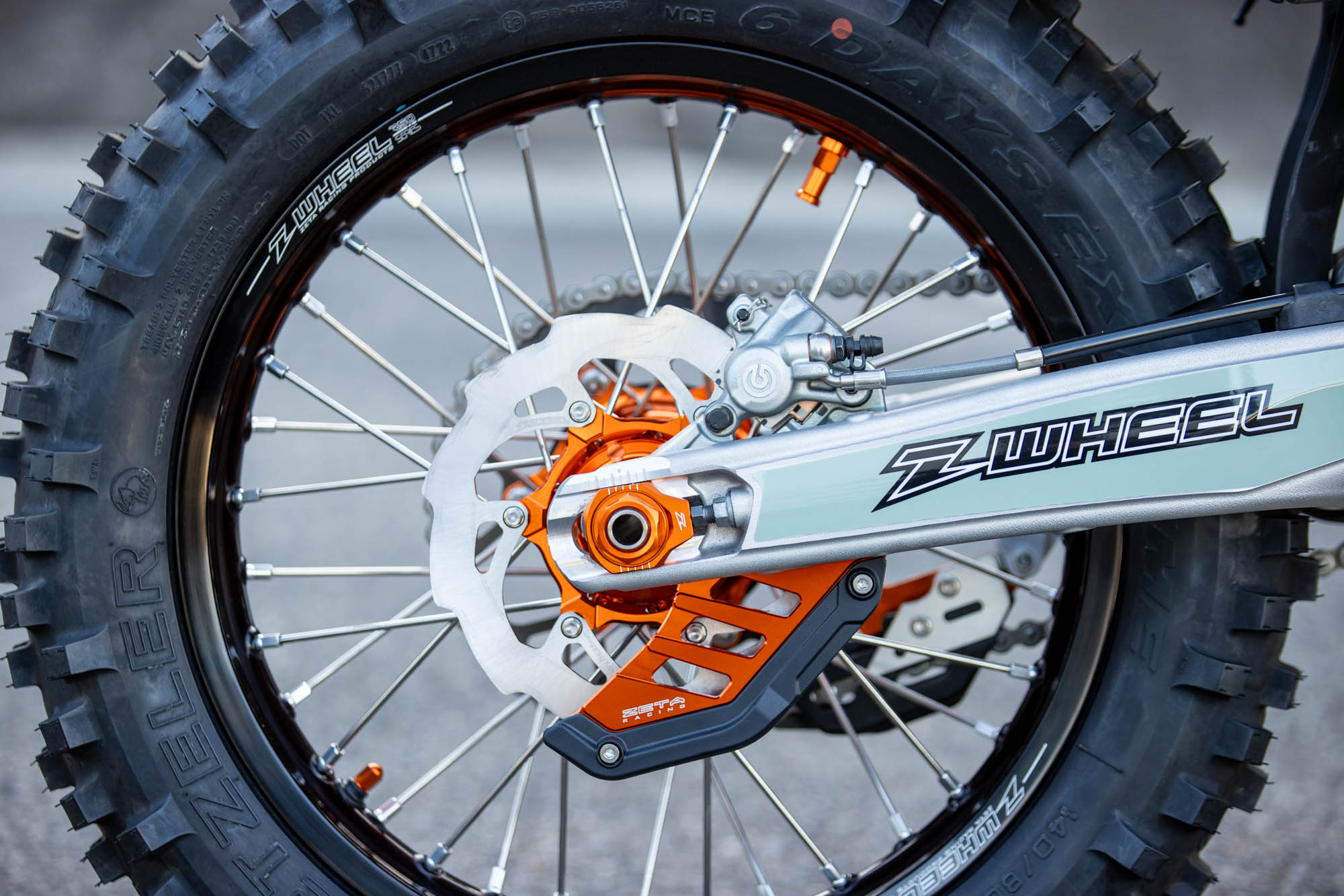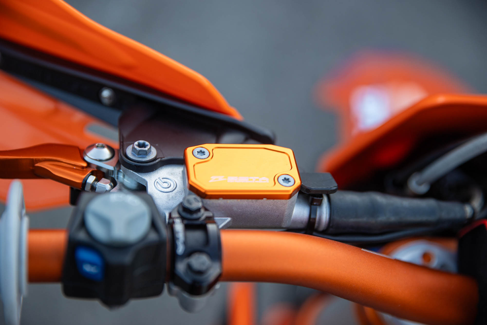 ハンドルバーには、高強度・柔軟性・軽量化を高次元でバランスさせたSX3ハンドルバーを採用。これに、転倒時の破損リスクを最小限に抑える可倒式ピボットレバーセットと、KTM純正のマウントにZETA RACING製ハンドガードを装着可能なXC PROコンバートハンドガードをチョイス。これにより、タイトなウッズやガレ場でも、クラッシュによるレバー折損などを恐れることなく攻めることができ、かつオープンガードで操作感も軽量に。