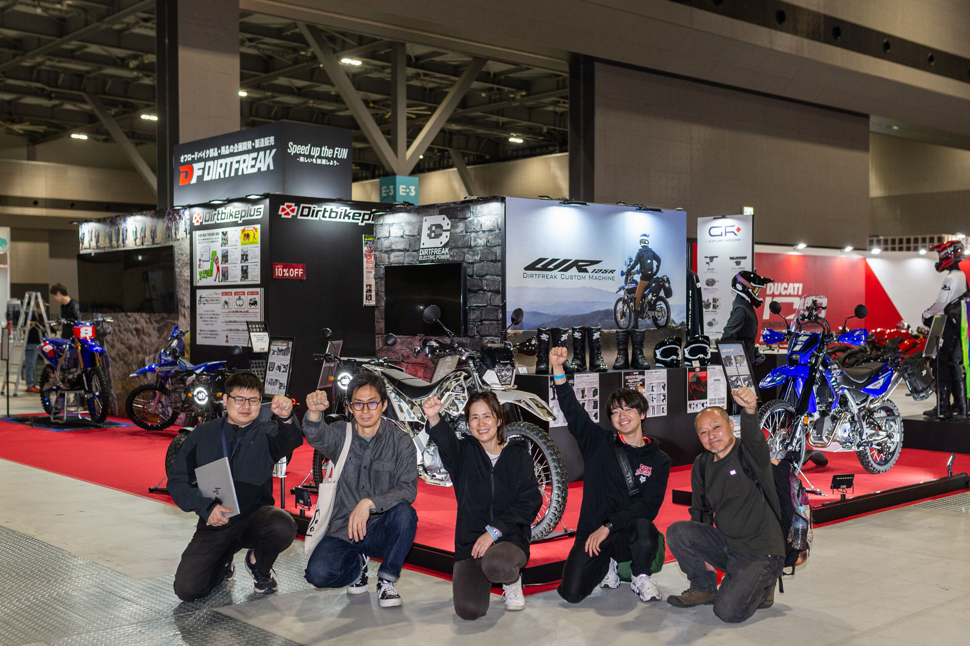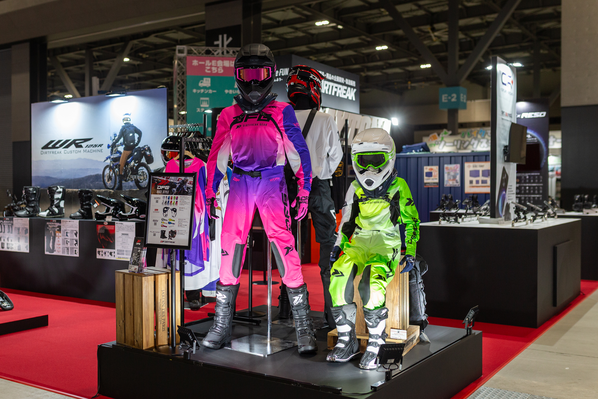 また、ダートフリークオリジナルブランドDFGのオフロードウエアも展示します。ウエア、 ヘルメット、ブーツ、プロテクターなど、安全かつ快適に走るための必須アイテムを実際に見て、触れて、その品質を確かめてみてください。