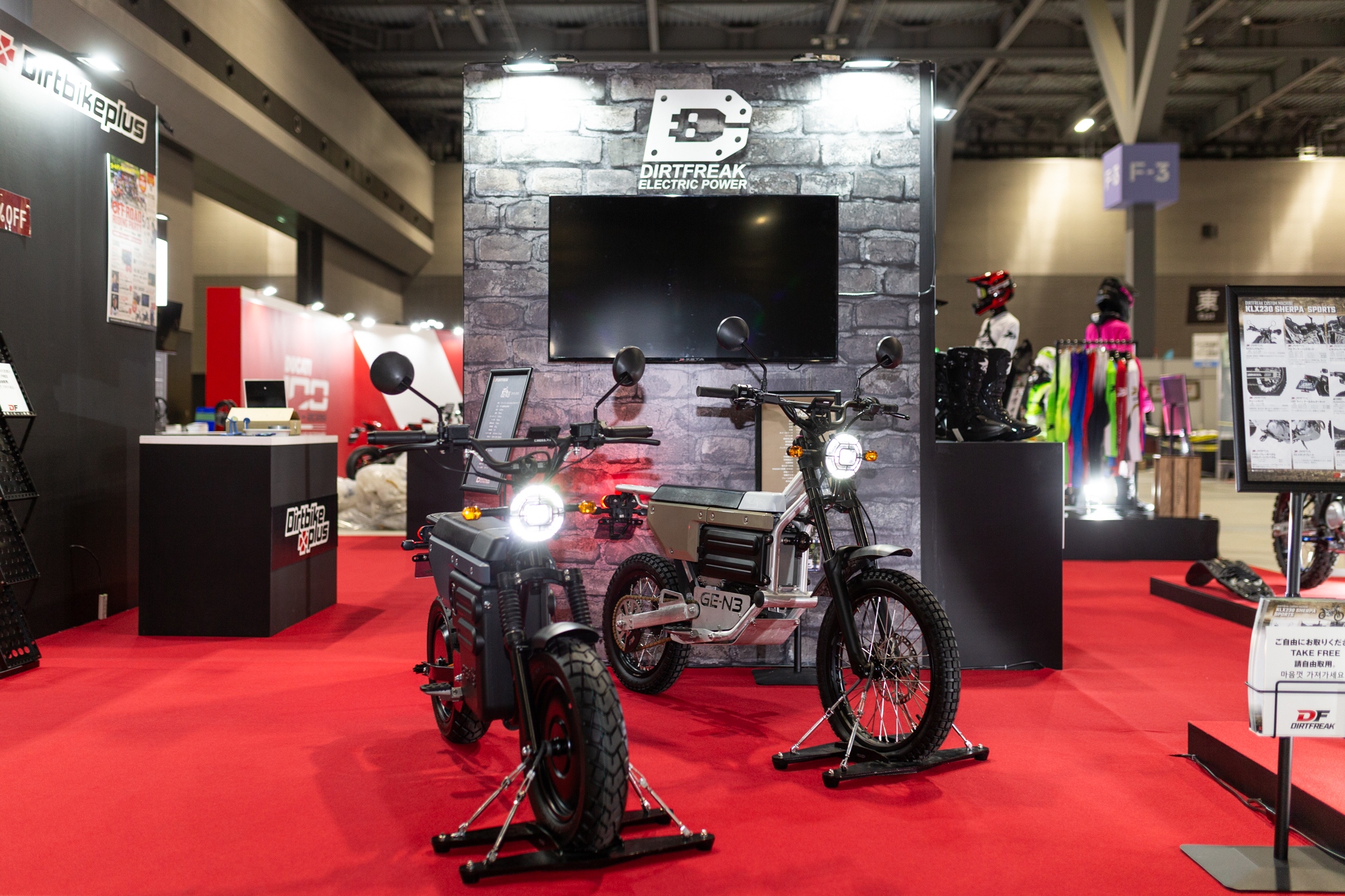「オフロードを始める一歩」をテーマに掲げる今年は、ヤマハ WR125Rとカワサキ KLX230 SHERPAの最新カスタム車両を展示。また、2025年に発売した電動原付車両「GE-N3」に加え、同マシンの派生モデル「GE-N3mini プロトタイプ」を参考出品します。さらに、ダートフリークのサポートライダーである、全日本モトクロス選手権IA1ライダー・大城魁之輔選手のYZ450F特別展示や、ダートフリーク直営店「ダートバイクプラス」による物販、屋内でのキッズ電動バイク教室など、例年以上に「見て、触れて、楽しめる」コンテンツを用意しています。