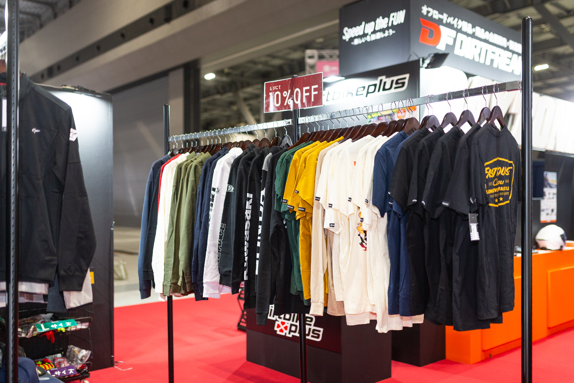 ダートフリークの直営店「ダートバイクプラス瀬戸」も名古屋モーターサイクルショーに出展。ダートフリークブース内にて、最新アパレルを中心とした物販を行います。