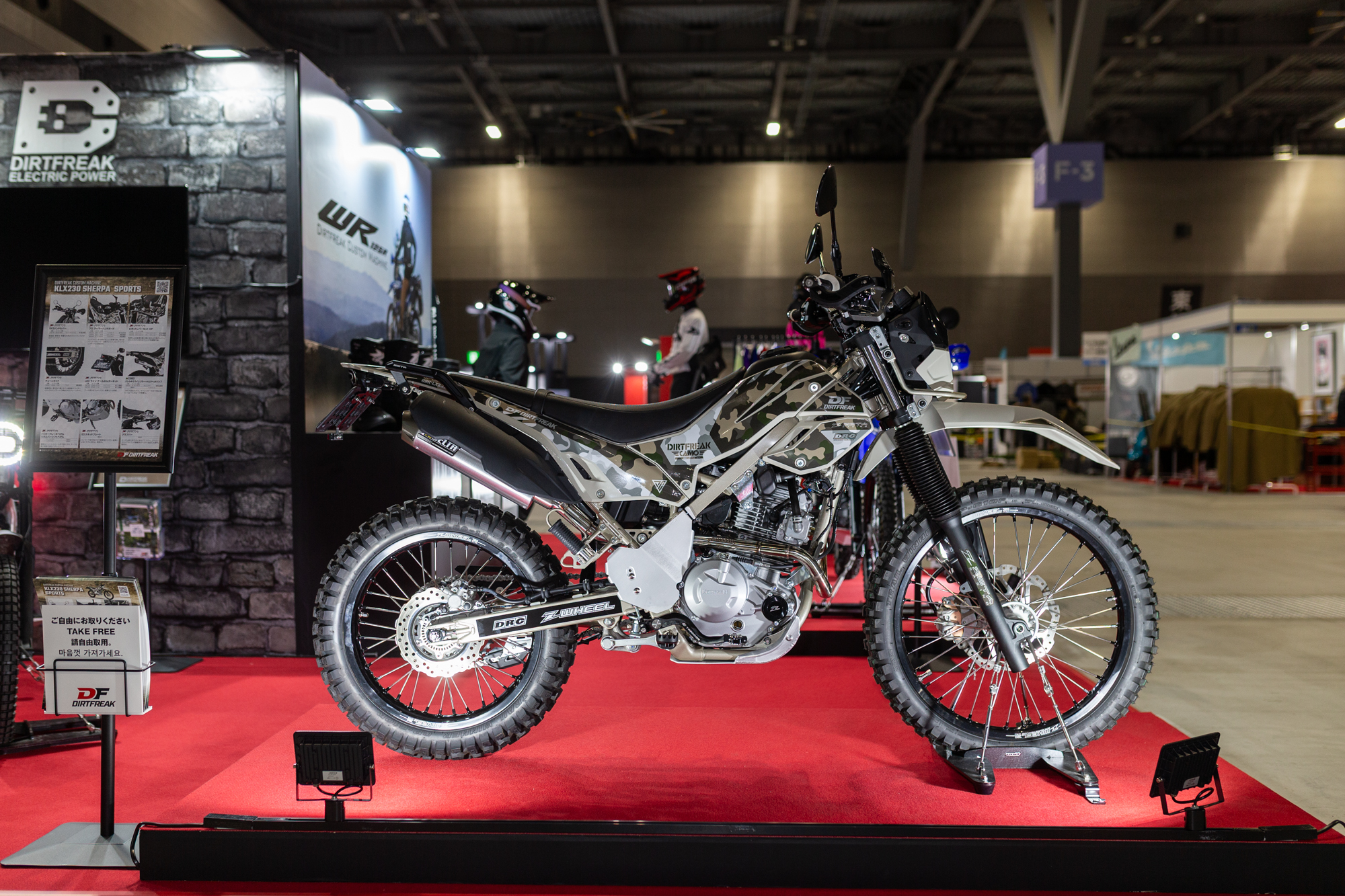 ダートフリークが取り扱うパーツを使用したDFカスタム車両。名古屋モーターサイクルショーでは、ヤマハ WR125Rとカワサキ KLX230 SHERPAをベースとした2つのスタイルを提案します。